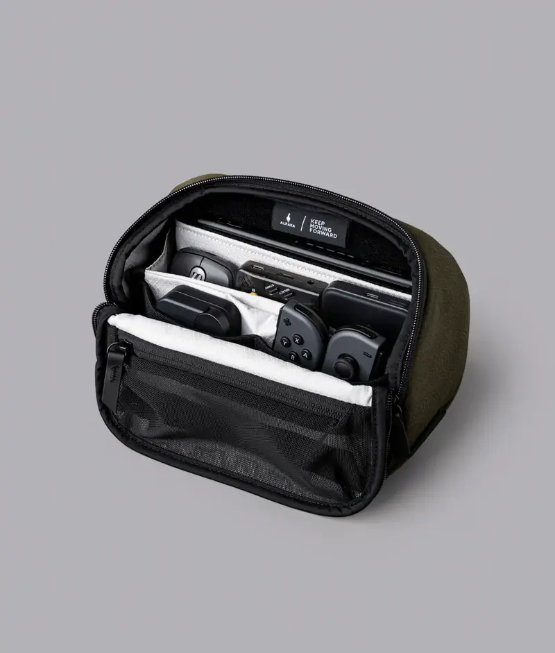 Vertex Pouch Mini переосмысливает организацию в компактном дизайне. Он легко трансформируется из настольного органайзера в сумку для технических аксессуаров или слинг.