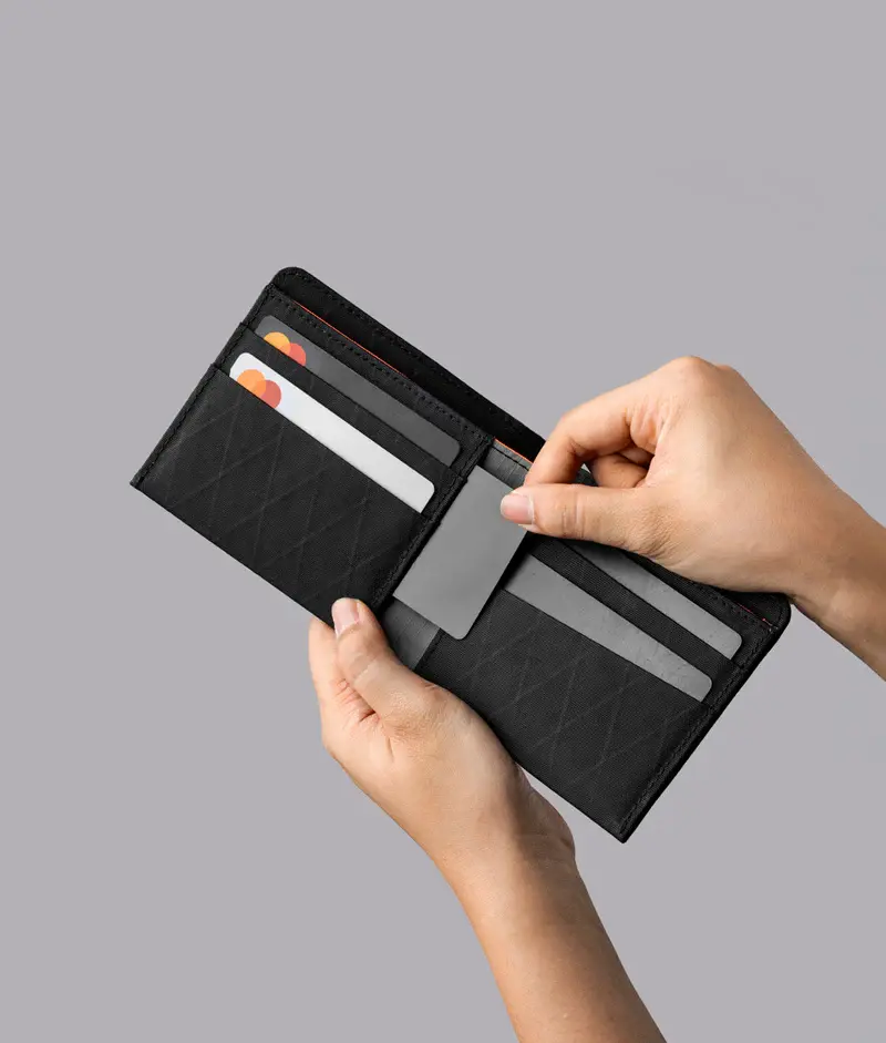 Ткань Axogrid 210D делает кошелёк особенно прочным. Он выдерживает ежедневное использование, сохраняя при этом тонкий профиль, а водоотталкивающая конструкция оставит ваши карты и наличные сухими, даже если вы попадёте под дождь.