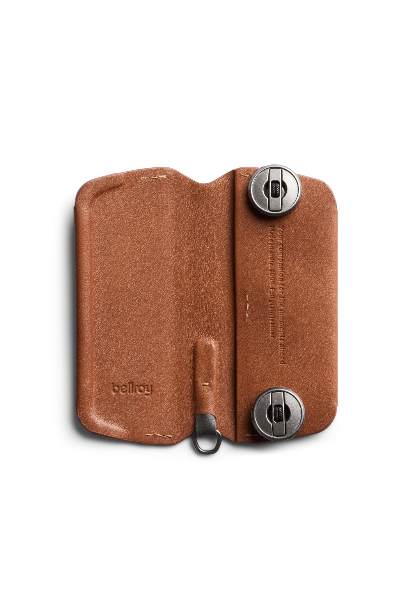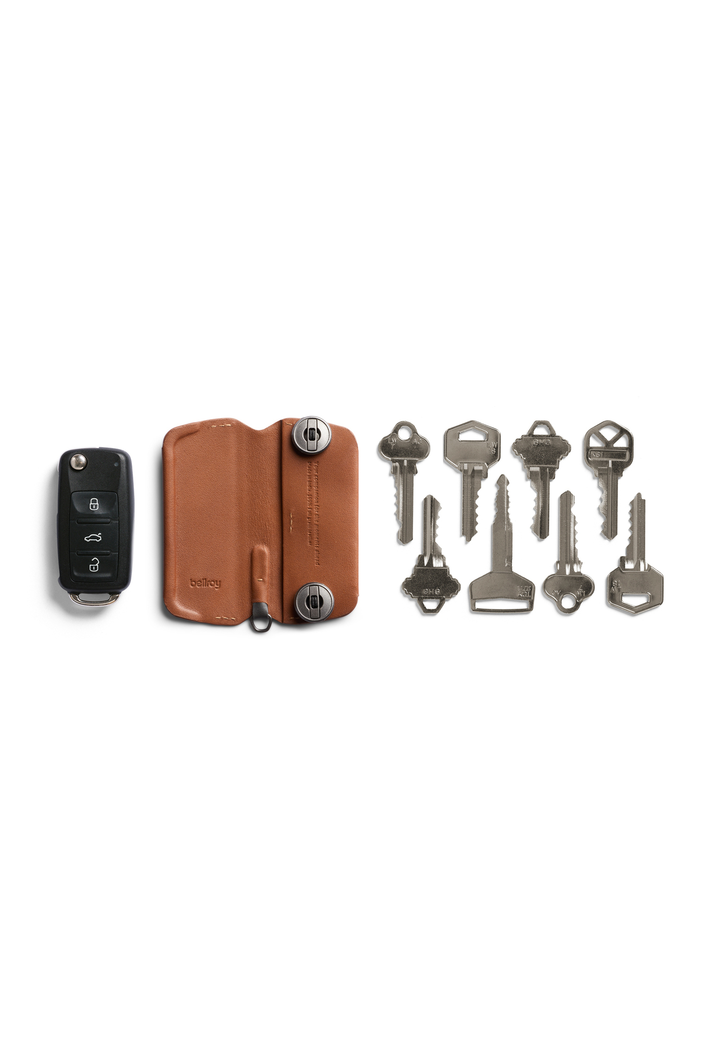 Bellroy извлёк уроки из предыдущих версий ключницы, чтобы сделать её как можно лучше: металлические петли уменьшают трение резинки, а D-образное кольцо позволяет пристёгивать ключи от машины.
