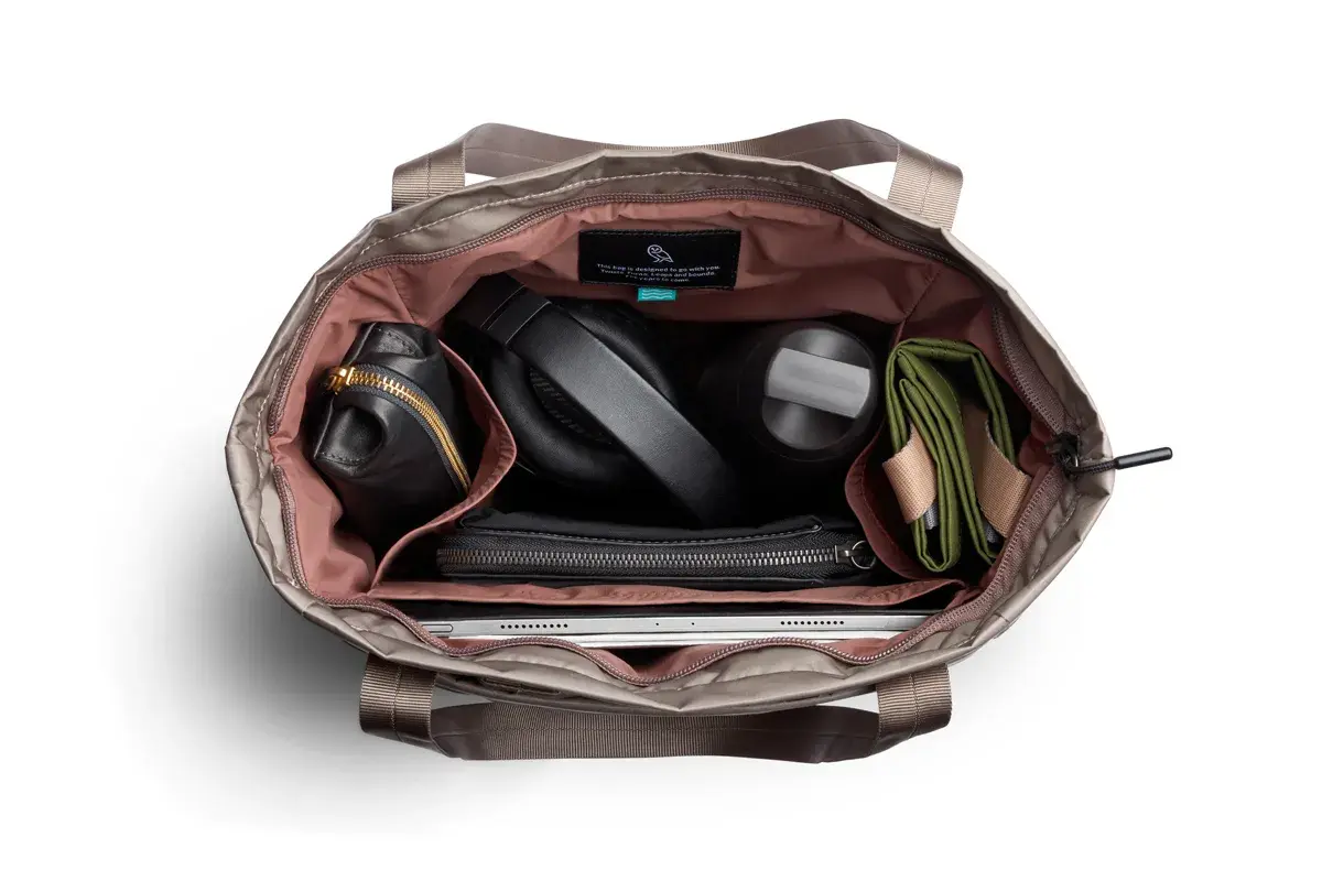 Внутренние карманы вытягиваются, чтобы хранить бутылки, обувь или зонтики в вертикальном положении, а затем складываются, когда они не используются.