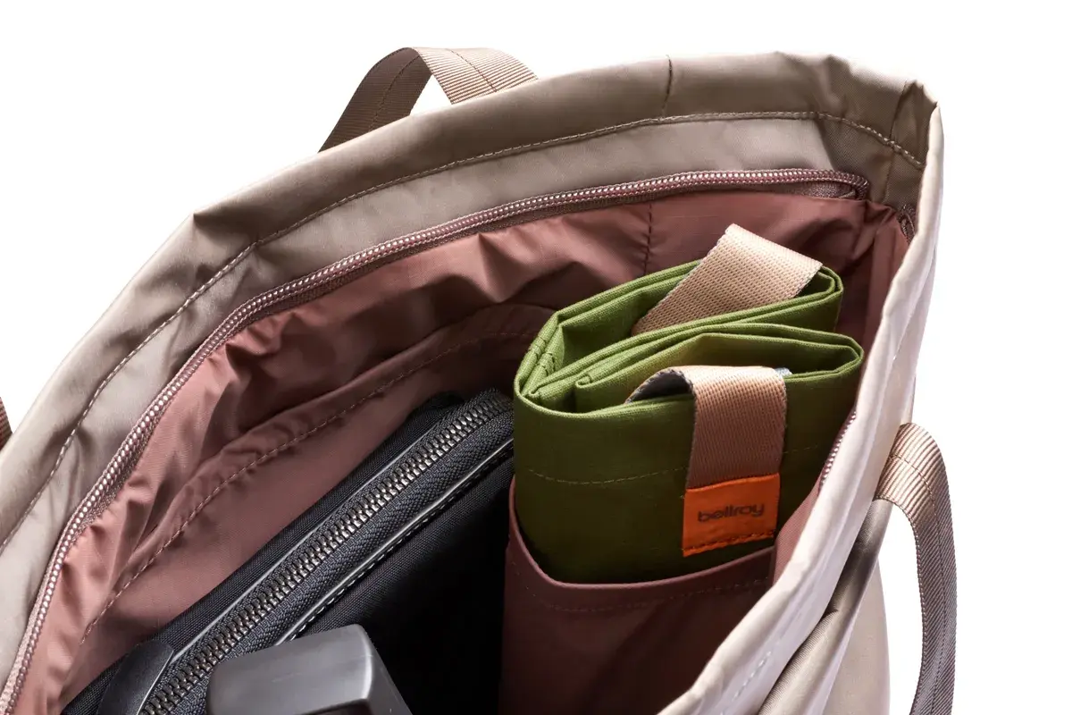Этот многофункциональный рюкзак предлагает различные варианты ношения: в руке, в виде сумки или в виде рюкзака с пристёгивающимися лямками. Внутри гибкие карманы позволяют хранить бутылки, обувь или зонтики.