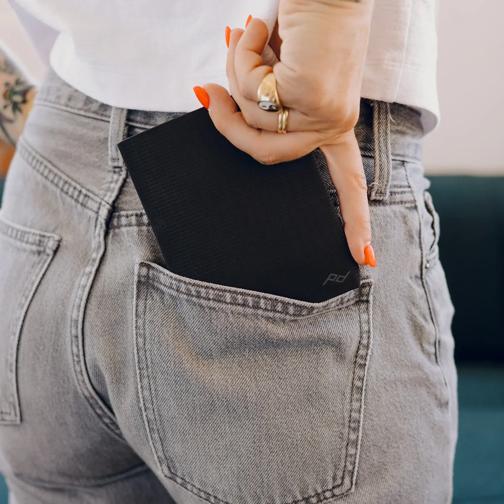- Ультратонкая конструкция для полного комфорта при ношении в переднем или заднем кармане.