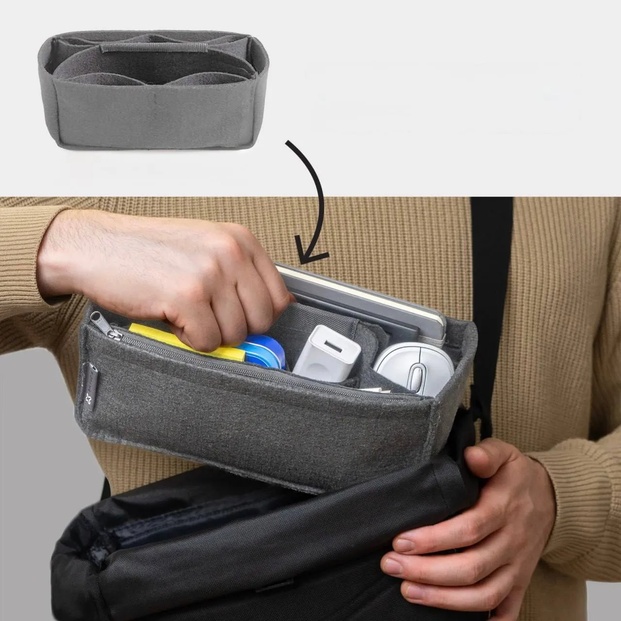 Познакомьтесь с Flux – идеальной сумкой на каждый день. Благодаря специальной внутренней вставке-органайзеру, FLUX позволяет легко поддерживать порядок среди всех ваших вещей и обеспечивает мгновенный доступ к ним.